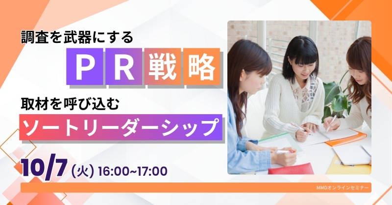 本セミナーでは、MMD研究所の豊富な調査ノウハウを交えながら、調査を効果的に広報として活用し、ソートリーダーシップに取り組むためのポイントを解説します。