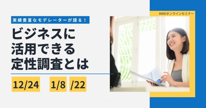 本セミナーでは、実際に定性調査を実施したモデレーターが登壇し、対談形式でその経験や調査結果の活用方法をお伝えします。