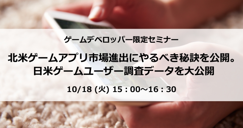 【セミナー】※申し込み終了※10/18(火)ゲームデベロッパー限定セミナー「北米ゲームアプリ市場進出にやるべき秘訣を公開。日米ゲームユーザー調査データを大公開」のご案内